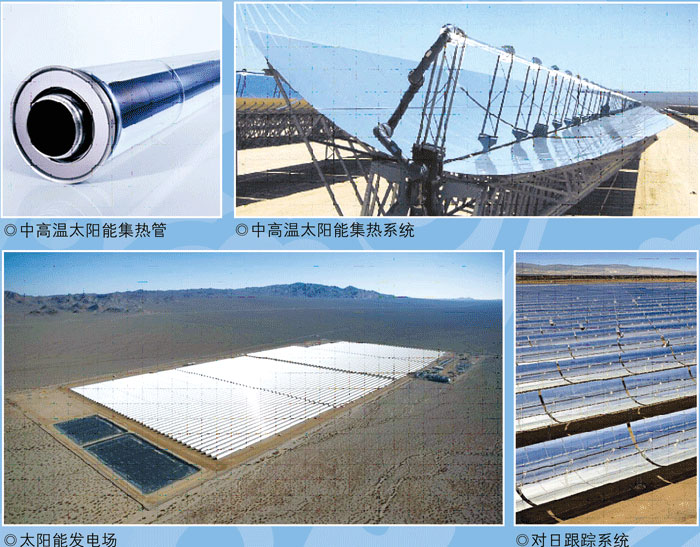 槽式太陽能熱發電系統的核心部分就是聚光集熱系統,而聚光集熱系統的核心部件就是中高溫太陽能真空集熱管。