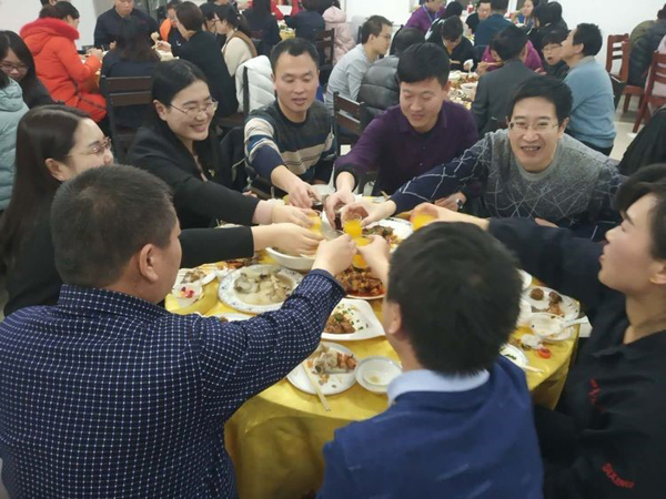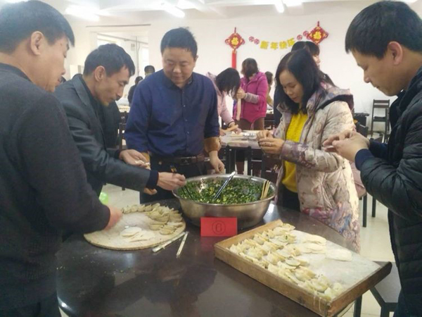 張永華總,大化來的高級高管,雖然膝蓋疼痛,但是為咱們員工端起餃子來,活力十足,一下年輕20歲。